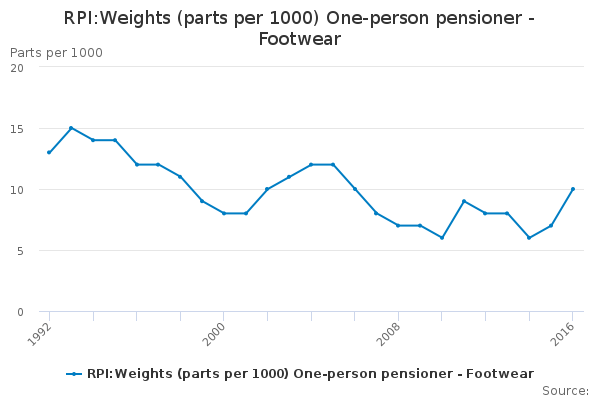 Download this time seriesRPI:Weights (parts per 1000) One-person pensioner - Footwear