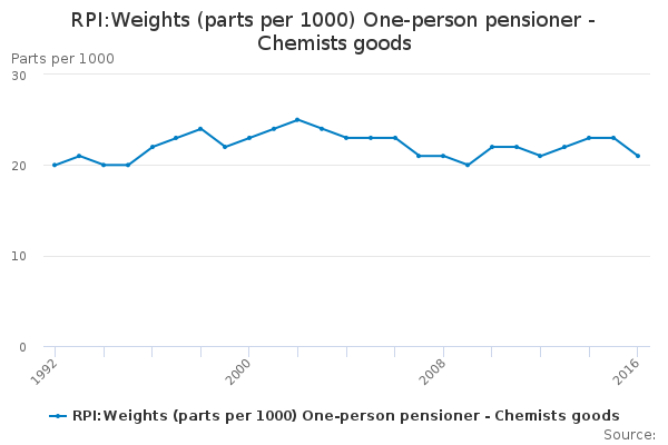 Download this time seriesRPI:Weights (parts per 1000) One-person pensioner - Chemists goods