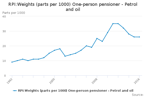 Download this time seriesRPI:Weights (parts per 1000) One-person pensioner - Petrol and oil