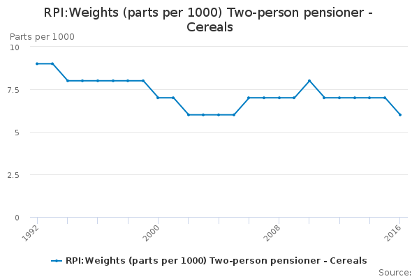 Download this time seriesRPI:Weights (parts per 1000) Two-person pensioner - Cereals