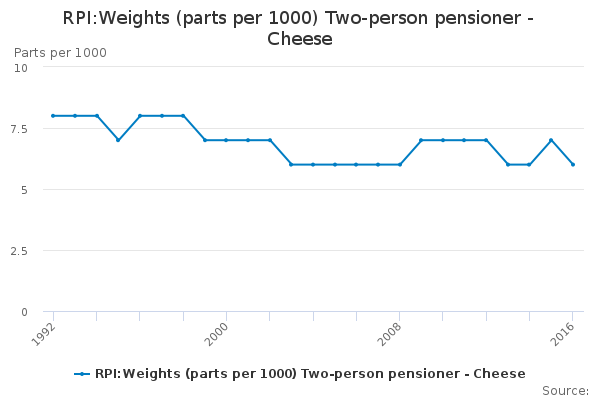 Download this time seriesRPI:Weights (parts per 1000) Two-person pensioner - Cheese
