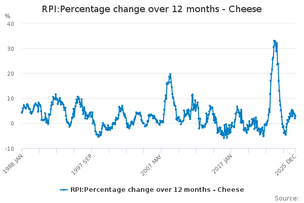 Download this time seriesRPI:Percentage change over 12 months - Cheese