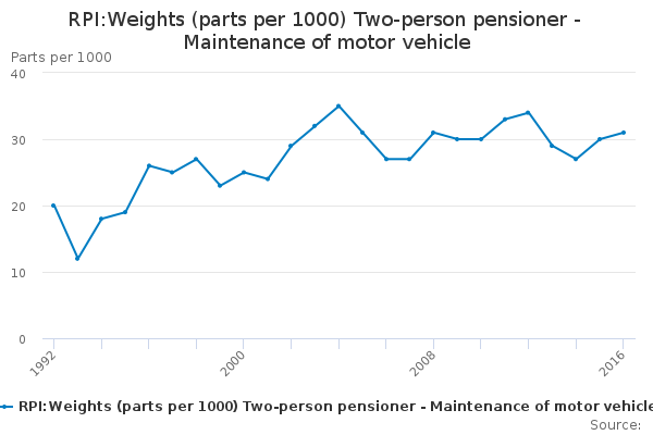 Download this time seriesRPI:Weights (parts per 1000) Two-person pensioner - Maintenance of motor vehicle