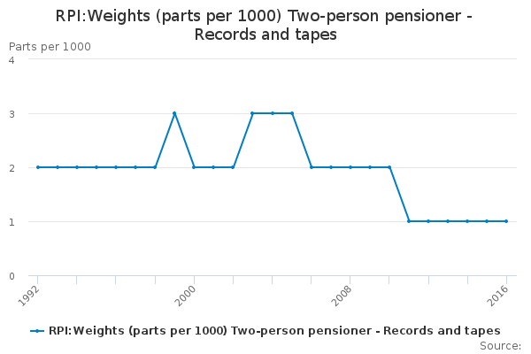 Download this time seriesRPI:Weights (parts per 1000) Two-person pensioner - Records and tapes