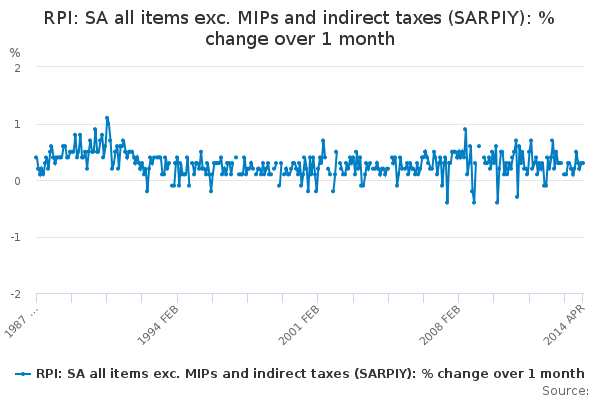 Download this time seriesRPI: SA all items exc. MIPs and indirect taxes (SARPIY): % change over 1 month