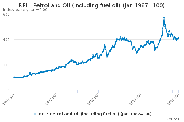 Download this time seriesRPI : Petrol and Oil (including fuel oil) (Jan 1987=100)