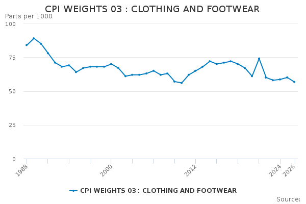 Download this time seriesCPI WEIGHTS 03 : CLOTHING AND FOOTWEAR