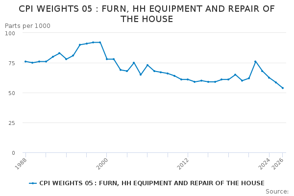 Download this time seriesCPI WEIGHTS 05 : FURN, HH EQUIPMENT AND REPAIR OF THE HOUSE