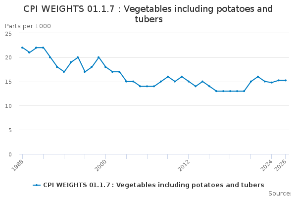 Download this time seriesCPI WEIGHTS 01.1.7 : Vegetables including potatoes and tubers