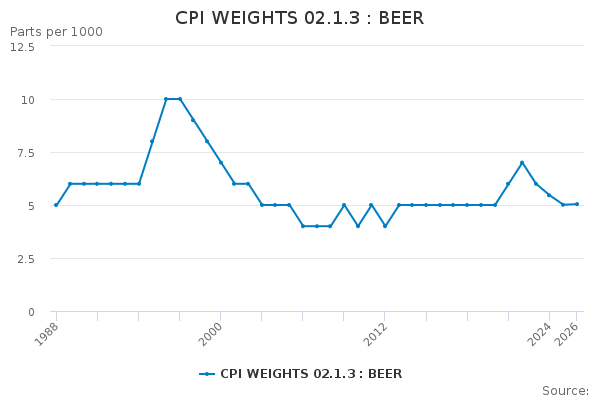 Download this time seriesCPI WEIGHTS 02.1.3 : BEER