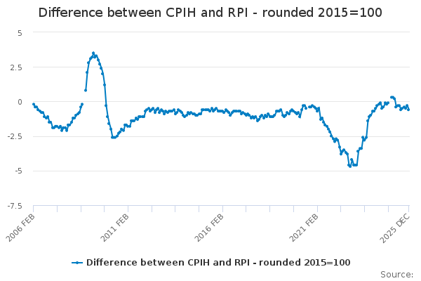 Download this time seriesDifference between CPIH and RPI - rounded 2015=100