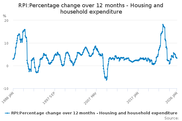 Download this time seriesRPI:Percentage change over 12 months - Housing and household expenditure