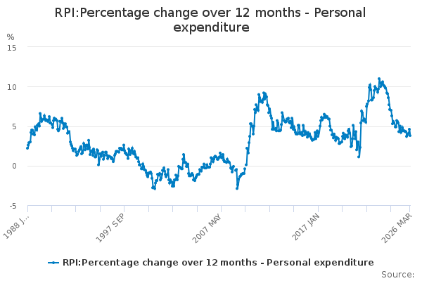 Download this time seriesRPI:Percentage change over 12 months - Personal expenditure