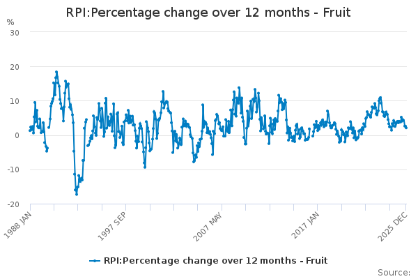 Download this time seriesRPI:Percentage change over 12 months - Fruit