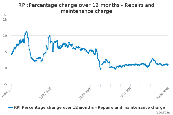 Download this time seriesRPI:Percentage change over 12 months - Repairs and maintenance charge
