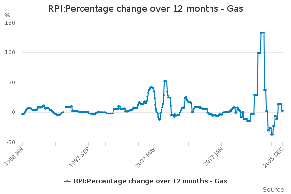 Download this time seriesRPI:Percentage change over 12 months - Gas