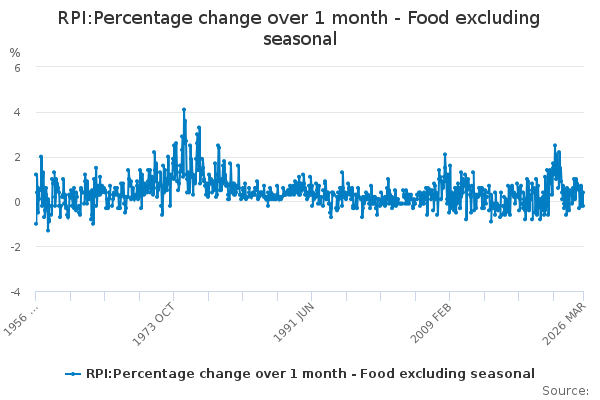 Download this time seriesRPI:Percentage change over 1 month - Food excluding seasonal