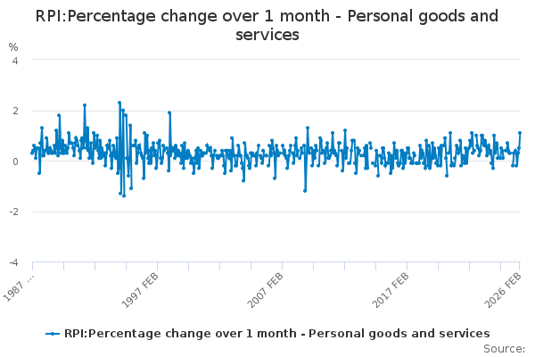 Download this time seriesRPI:Percentage change over 1 month - Personal goods and services