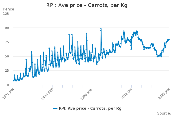 Download this time seriesRPI: Ave price - Carrots, per Kg