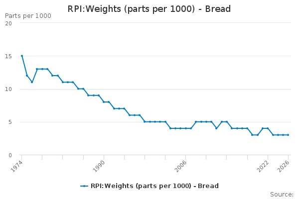 Download this time seriesRPI:Weights (parts per 1000) - Bread