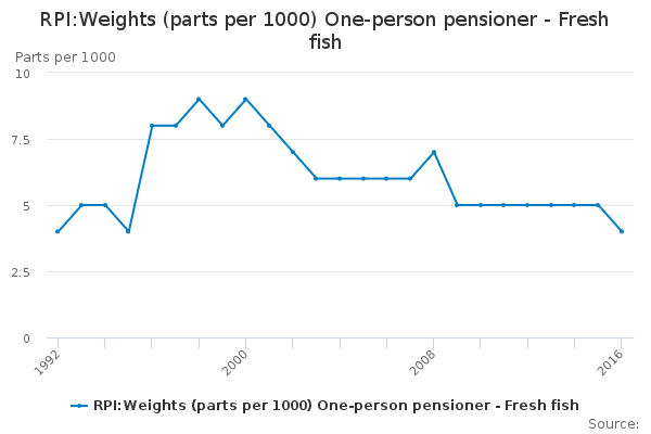Download this time seriesRPI:Weights (parts per 1000) One-person pensioner - Fresh fish