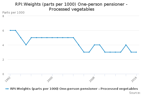 Download this time seriesRPI:Weights (parts per 1000) One-person pensioner - Processed vegetables