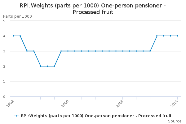 Download this time seriesRPI:Weights (parts per 1000) One-person pensioner - Processed fruit