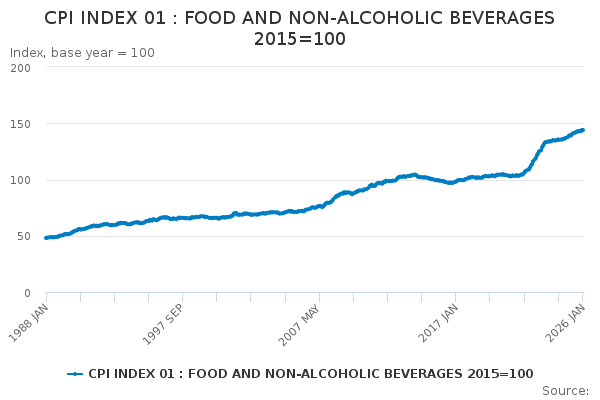 Download this time seriesCPI INDEX 01 : FOOD AND NON-ALCOHOLIC BEVERAGES 2015=100