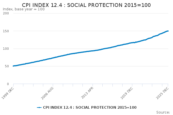 Download this time seriesCPI INDEX 12.4 : SOCIAL PROTECTION 2015=100