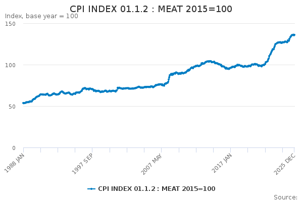 Download this time seriesCPI INDEX 01.1.2 : MEAT 2015=100