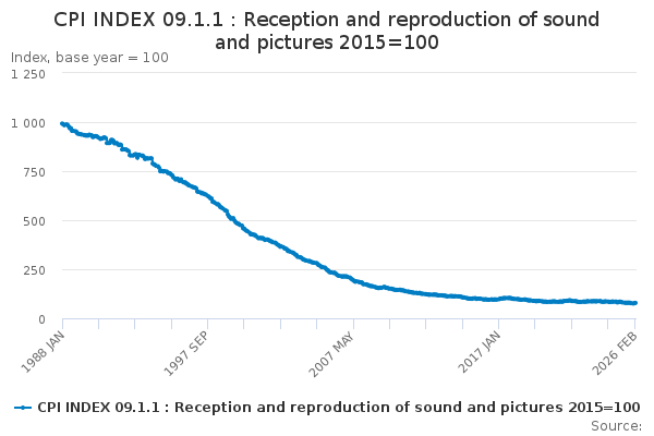 Download this time seriesCPI INDEX 09.1.1 : Reception and reproduction of sound and pictures 2015=100