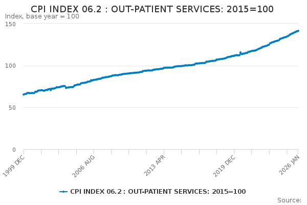 Download this time seriesCPI INDEX 06.2 : OUT-PATIENT SERVICES: 2015=100
