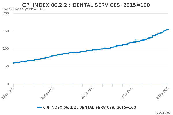 Download this time seriesCPI INDEX 06.2.2 : DENTAL SERVICES: 2015=100