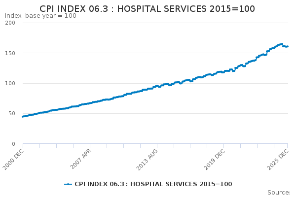 Download this time seriesCPI INDEX 06.3 : HOSPITAL SERVICES 2015=100