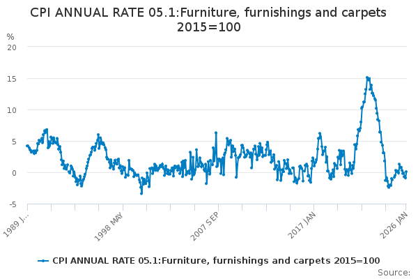 Download this time seriesCPI ANNUAL RATE 05.1:Furniture, furnishings and carpets 2015=100