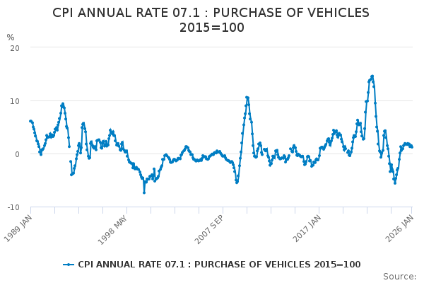 Download this time seriesCPI ANNUAL RATE 07.1 : PURCHASE OF VEHICLES 2015=100