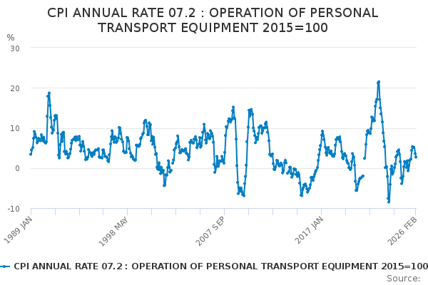 Download this time seriesCPI ANNUAL RATE 07.2 : OPERATION OF PERSONAL TRANSPORT EQUIPMENT 2015=100