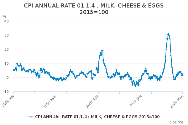 Download this time seriesCPI ANNUAL RATE 01.1.4 : MILK, CHEESE & EGGS 2015=100