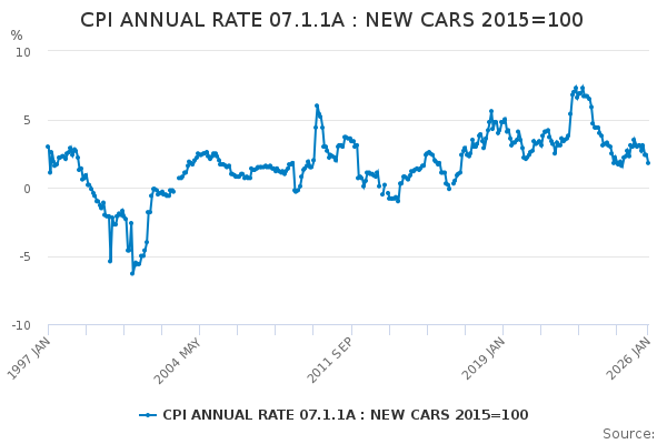Download this time seriesCPI ANNUAL RATE 07.1.1A : NEW CARS 2015=100