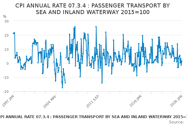 Download this time seriesCPI ANNUAL RATE 07.3.4 : PASSENGER TRANSPORT BY SEA AND INLAND WATERWAY 2015=100