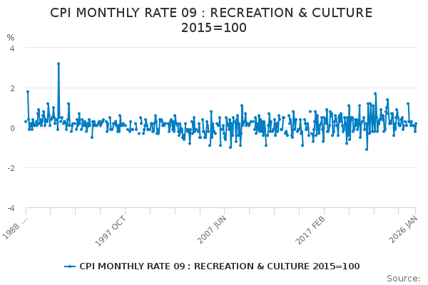 Download this time seriesCPI MONTHLY RATE 09 : RECREATION & CULTURE 2015=100