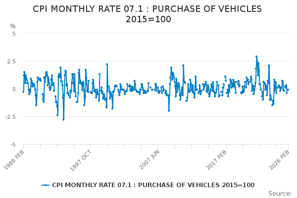Download this time seriesCPI MONTHLY RATE 07.1 : PURCHASE OF VEHICLES 2015=100