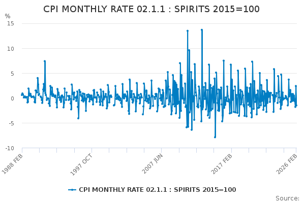 Download this time seriesCPI MONTHLY RATE 02.1.1 : SPIRITS 2015=100