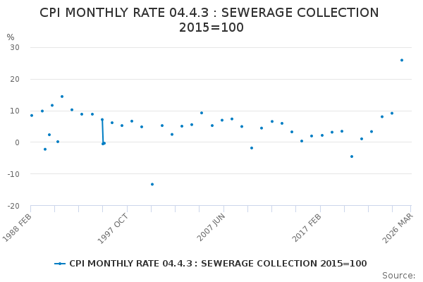 Download this time seriesCPI MONTHLY RATE 04.4.3 : SEWERAGE COLLECTION 2015=100
