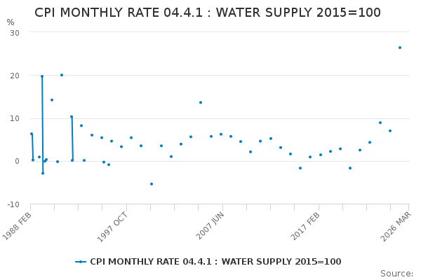 Download this time seriesCPI MONTHLY RATE 04.4.1 : WATER SUPPLY 2015=100