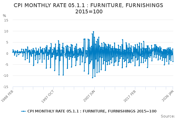 Download this time seriesCPI MONTHLY RATE 05.1.1 : FURNITURE, FURNISHINGS 2015=100