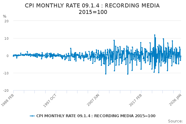 Download this time seriesCPI MONTHLY RATE 09.1.4 : RECORDING MEDIA 2015=100