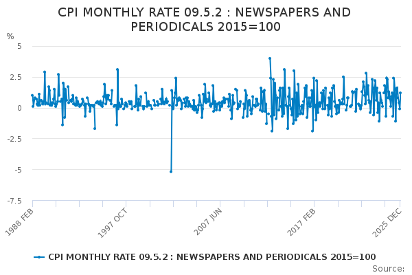 Download this time seriesCPI MONTHLY RATE 09.5.2 : NEWSPAPERS AND PERIODICALS 2015=100