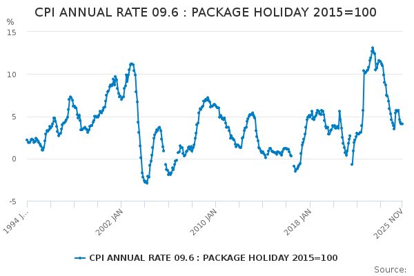 Download this time seriesCPI ANNUAL RATE 09.6 : PACKAGE HOLIDAY 2015=100