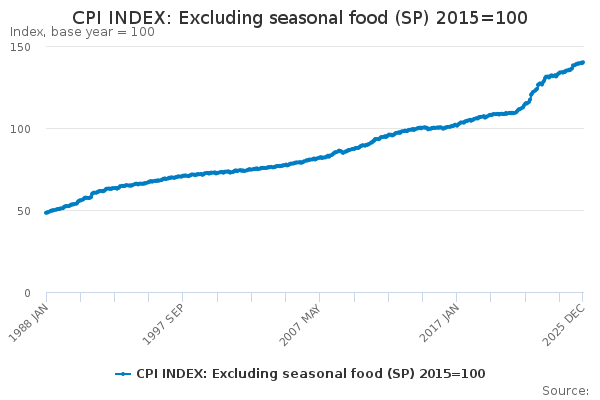 Download this time seriesCPI INDEX: Excluding seasonal food (SP) 2015=100